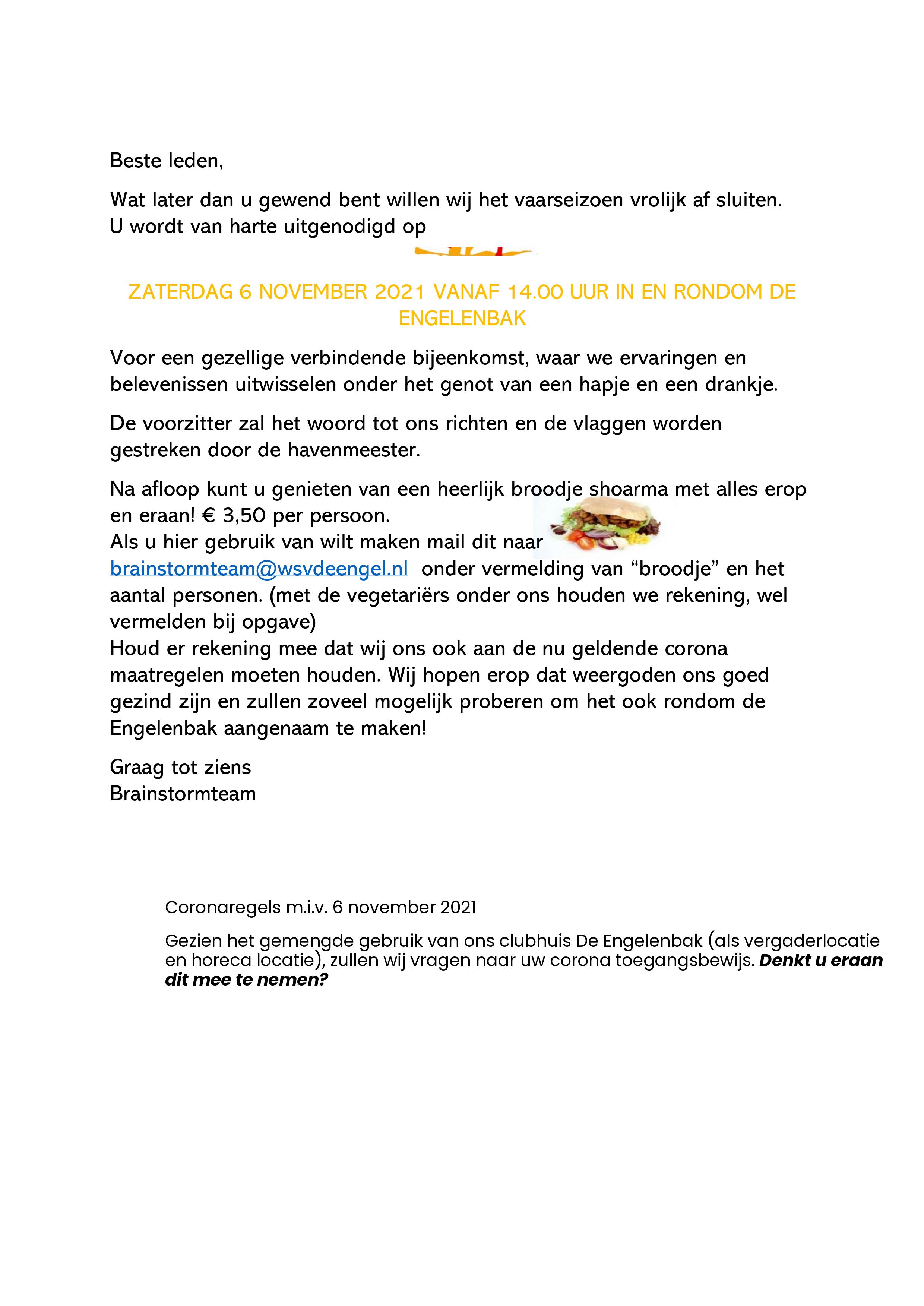 Beste leden,Wat later dan u gewend bent willen wij het vaarseizoen vrolijk af sluiten.